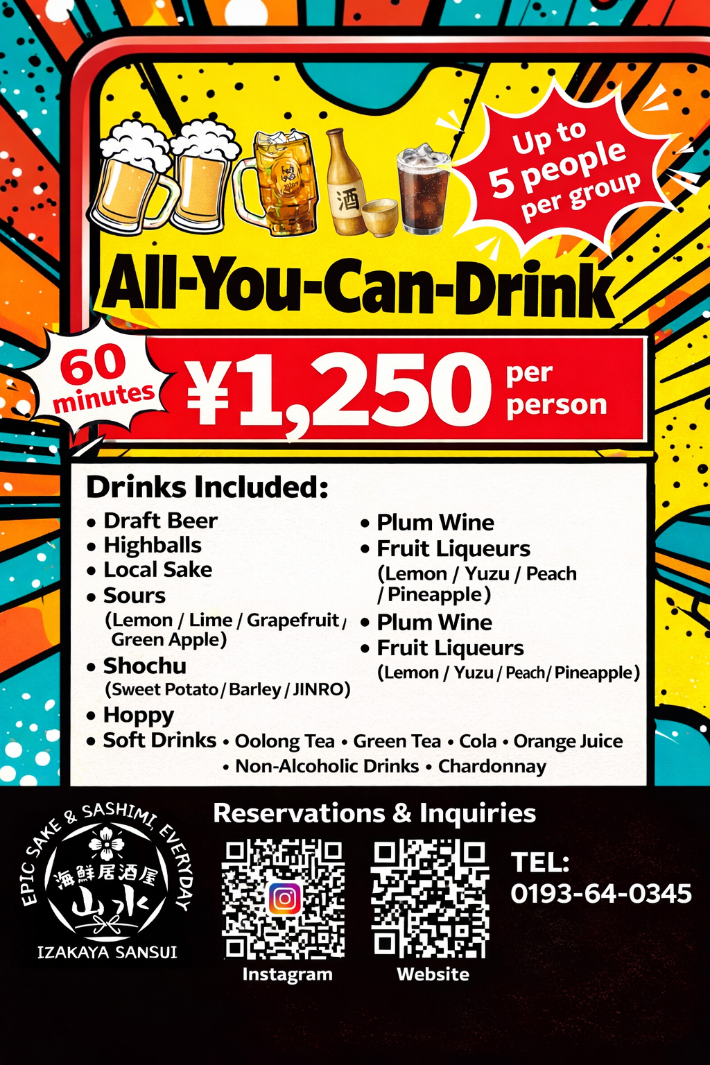 Enjoy Izakaya Sansui's unique cuisine and drinks to your heart's content in this traditional Japanese izakaya space.